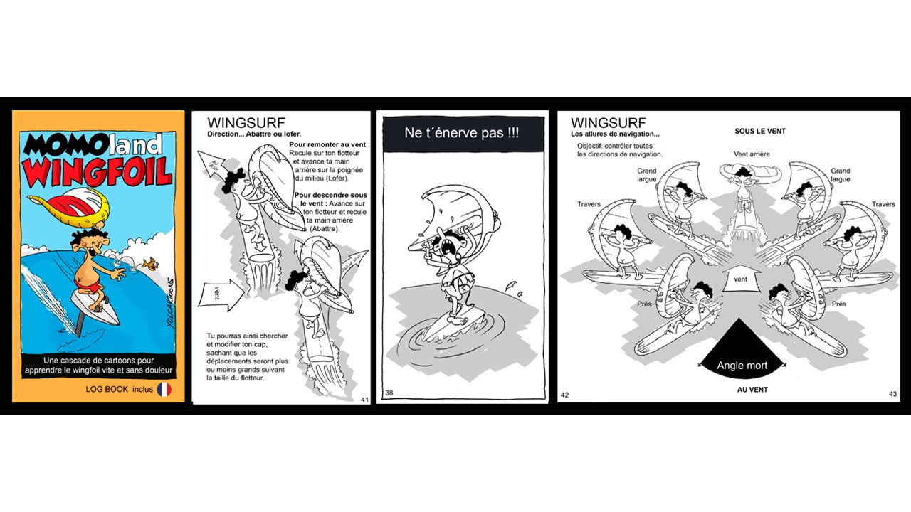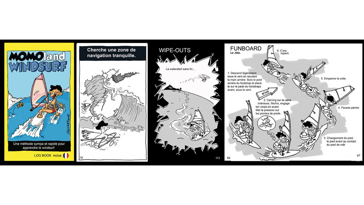 Une méthode originale et amusante pour apprendre ou améliorer son niveau en windsurf, wingfoil ou surf tout en feuilletant des cartoons. Du grand débutant au rider confirmé, tu trouveras toutes les réponses à tes petits problèmes techniques ou tes prochains défis sur l’eau.